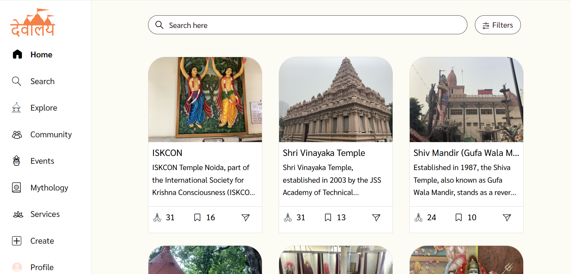 Devalay is a digital platform that connects users with temples, rituals, and spiritual content. It helps devotees explore temples, learn about traditions, view events, and participate in religious activities online.The platform aims to preserve and promote cultural and spiritual heritage by making temple information, rituals, and community features accessible through a website or mobile app.